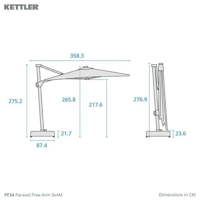 Offering UV50+ protection and shower resistant, the 4x3m parasol is just the thing you need with the unpredictable British weather.