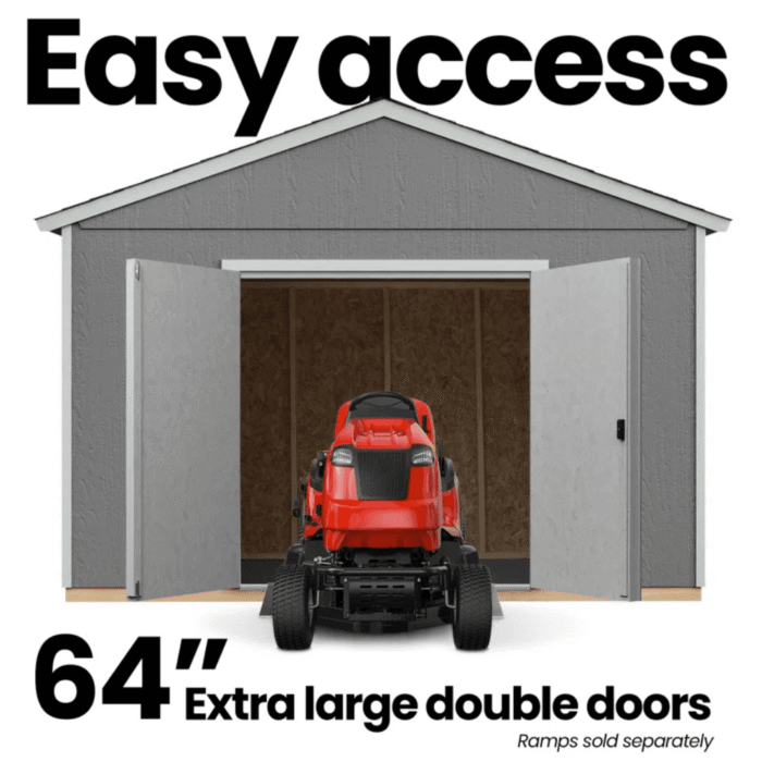 64″ wide double doors allow for easy access to large equipment, tools, and storage bins.